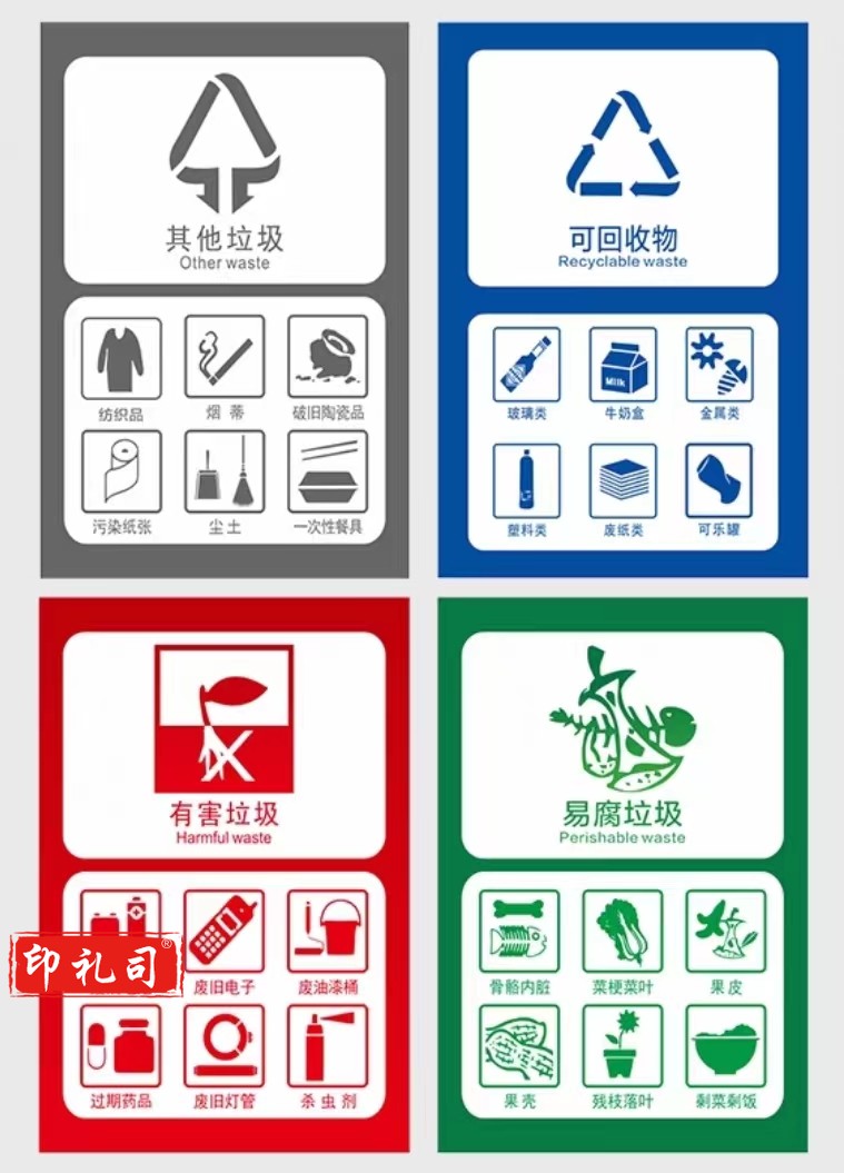 垃圾分类标识牌 不可回收标示贴 国标带图垃圾分类贴(4个/套) (尺寸20*30)