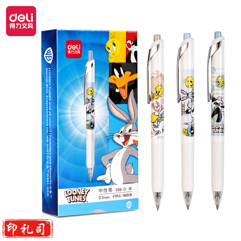 得力S88-D兔巴哥臻顺滑按动中性笔0.5mm子弹头(黑)(支)