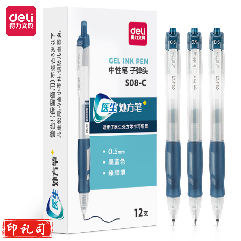 得力 S08-C医生处方笔臻顺滑0.5mm弹簧头(墨蓝)12支/盒