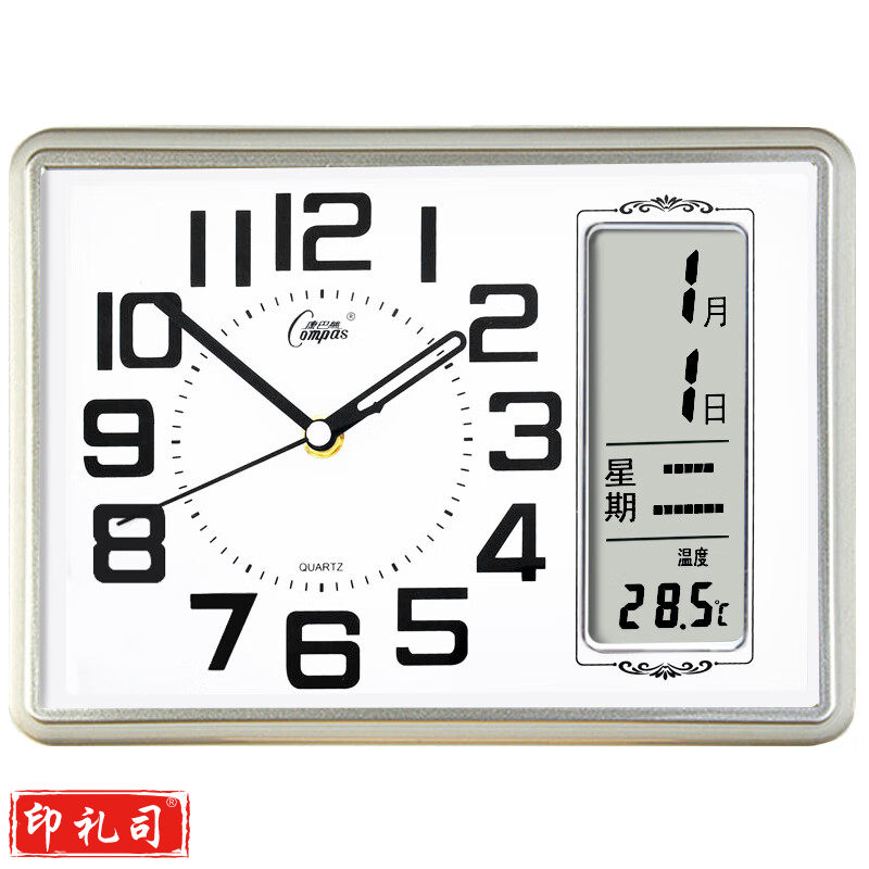 康巴丝(Compas)座钟客厅简约台钟石英钟时尚日历床头钟2991 银色