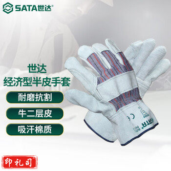 世达(SATA) 半牛皮劳保手套FS0101 防滑耐磨抗割 搬运铸造机械操作工作防护手套 经济型半皮手套L 两双装
