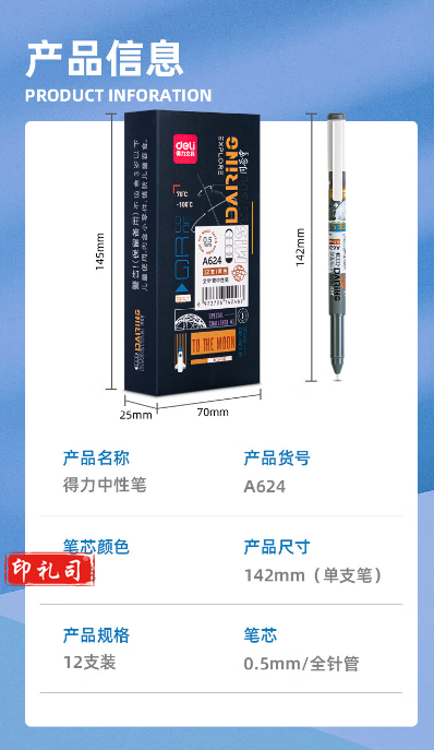 得力A624中国航天主题学生中性笔0.5mm全针管(黑)(支)