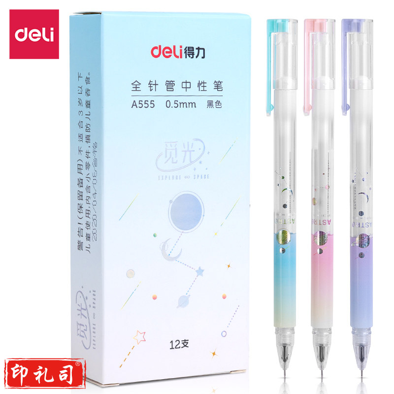 得力A555学生中性笔0.5mm全针管(黑)(支)