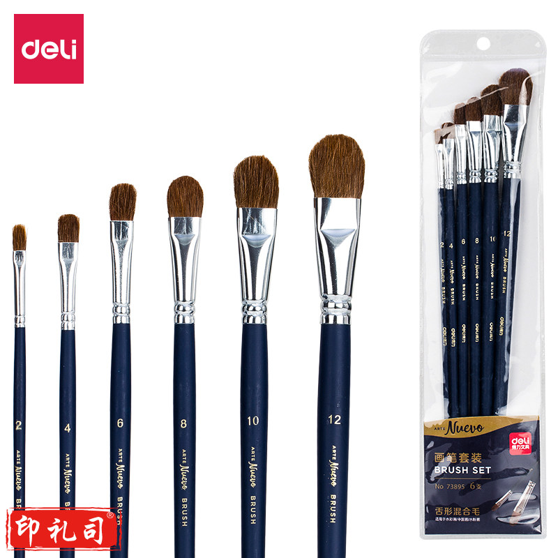 得力73895_舌形混合毛画笔6支套装(蓝色)(6支/袋)
