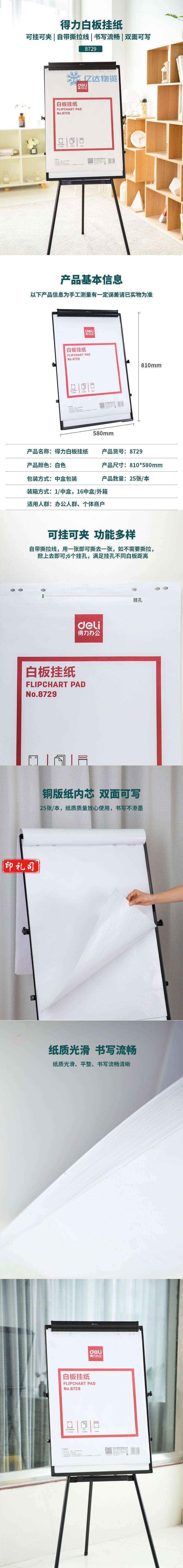 得力(deli) 8729白板挂纸810*580mm(25张/卷)(白色)
