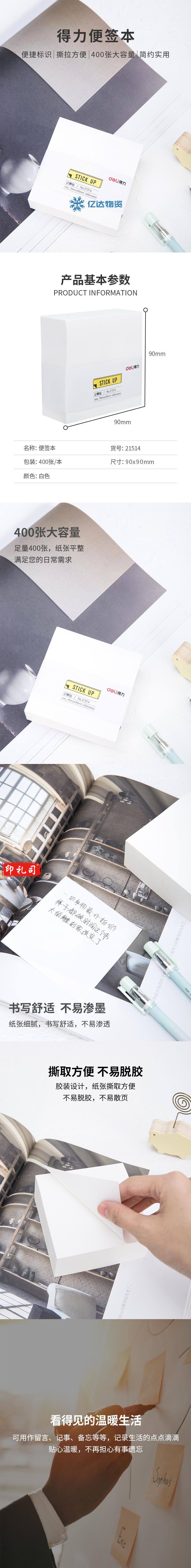 得力(deli) 21514记事贴(白)90mm*90mm-400张(包)