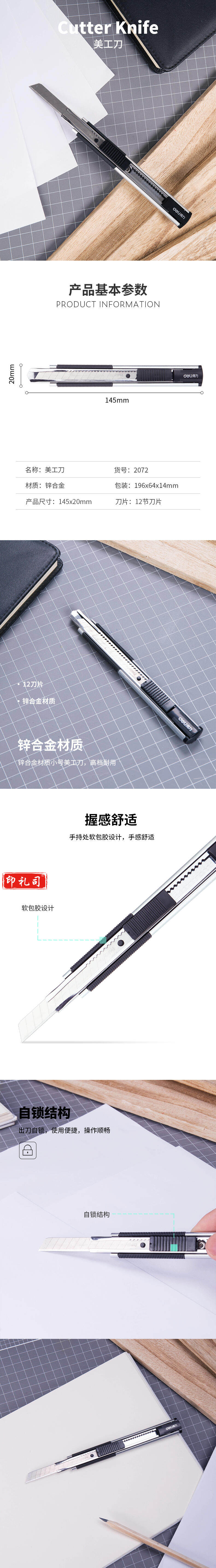 得力(deli) 锌合金自锁美工刀 软包胶裁纸刀 银色2072