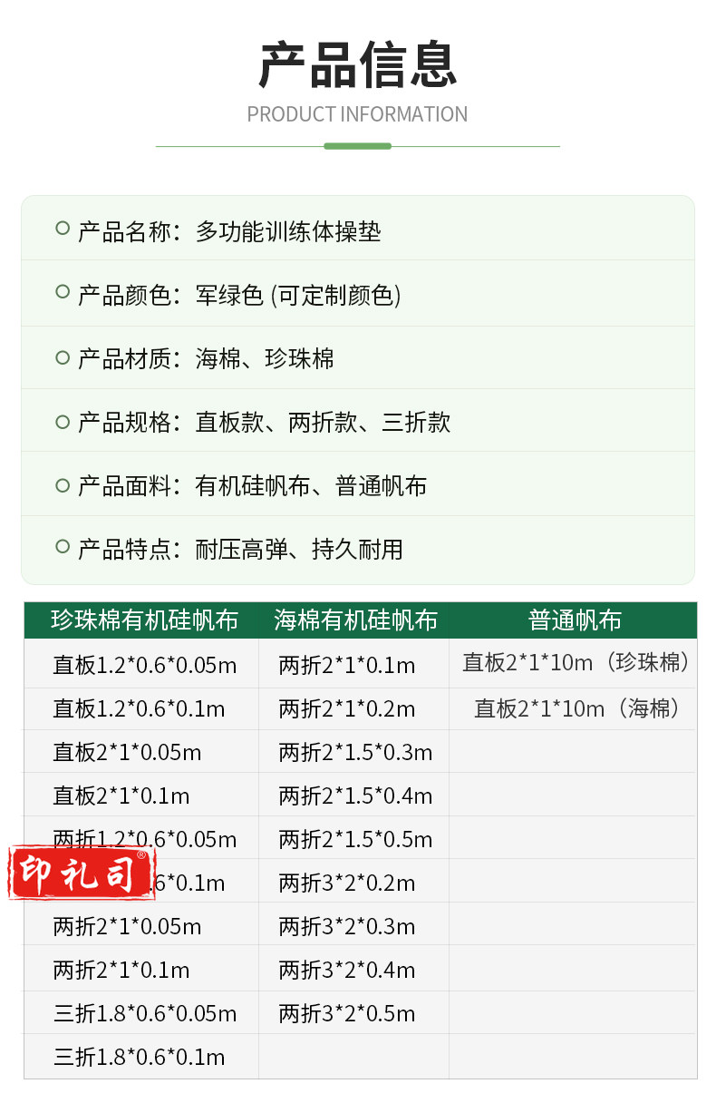体操垫空翻垫仰卧起坐垫直板2*1*0.05m珍珠棉带粘贴可拼接地垫