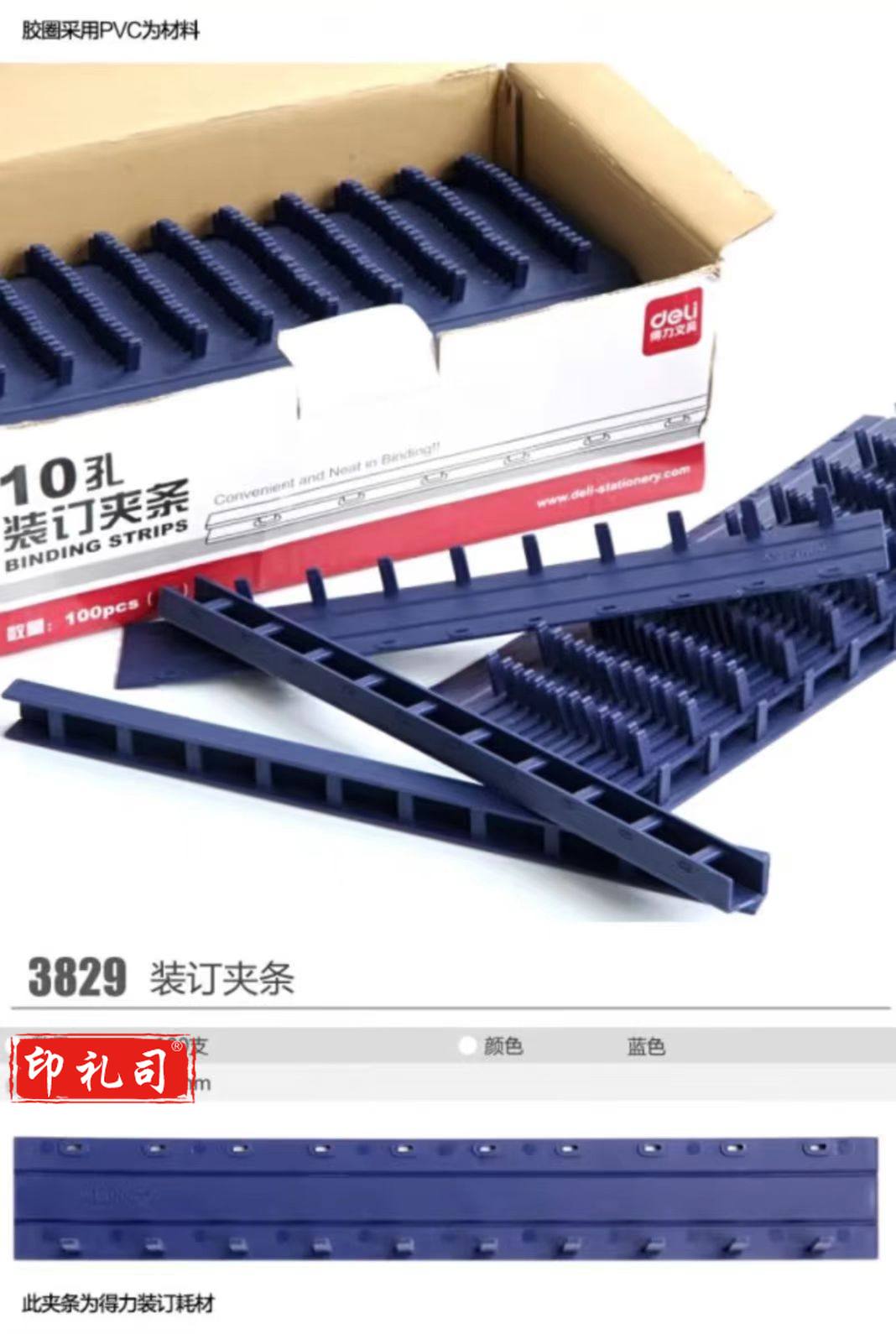 得力3829 10孔装订夹条A 4塑料标书文件装订机夹边条 100支/盒 黑色15mm 可装订150页左右