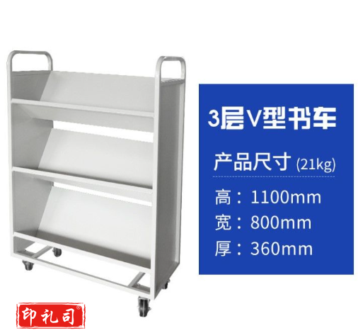 三层 手推车档案室图书馆移动小推车 V型书车 配静音轮