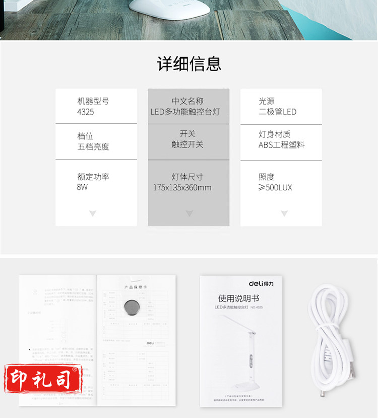 得力4325 LED可充电带屏幕台灯(白色)1200mAh DC5V