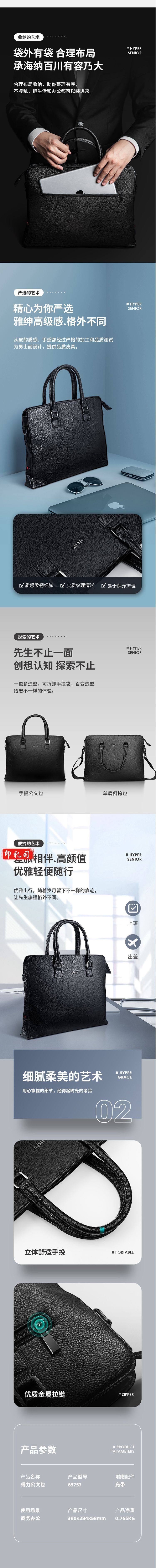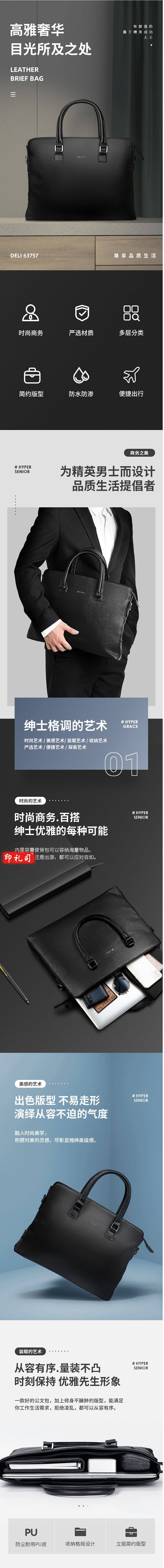 得力 63757 公文包商务手提包 高档皮质款-黑色(单位 个)