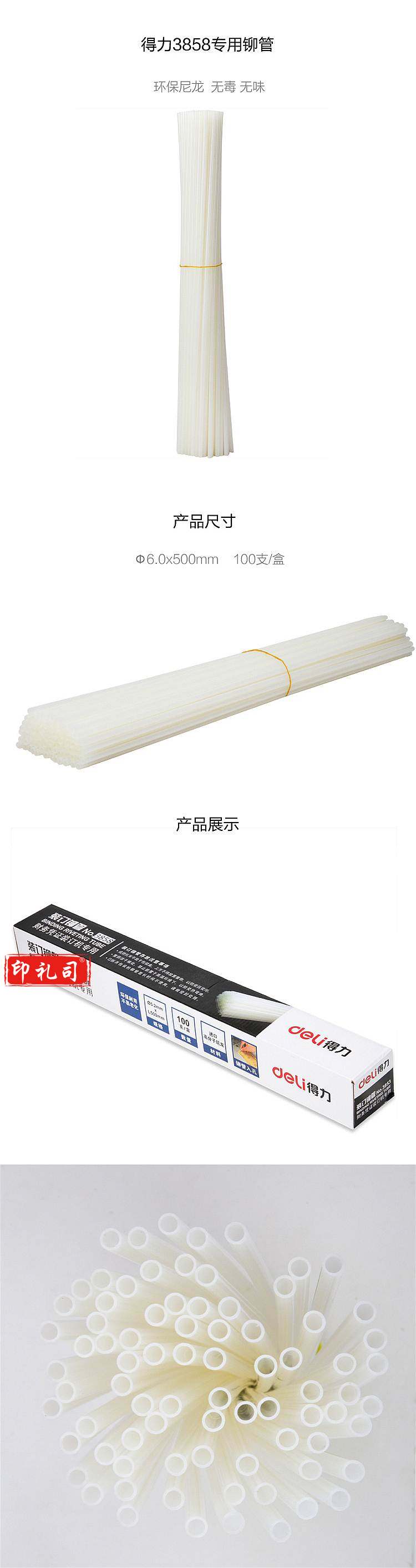 得力 3858 装订铆管 6*500mm 100支/盒(单位 盒)