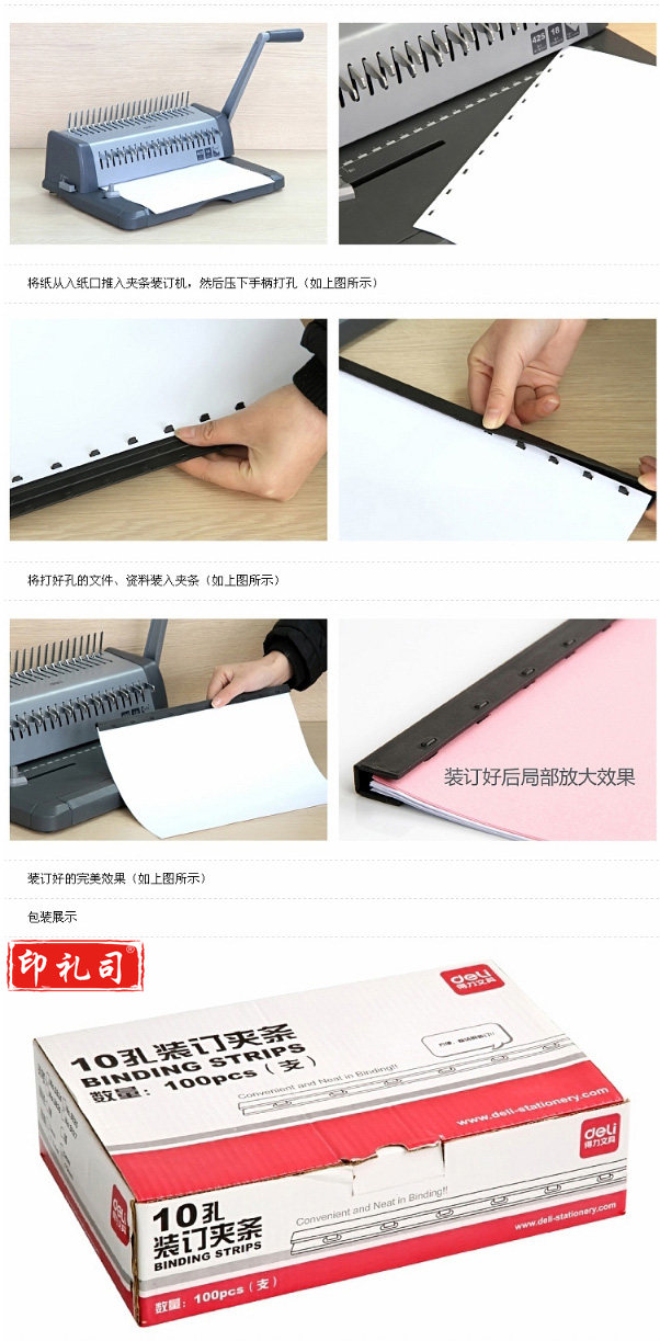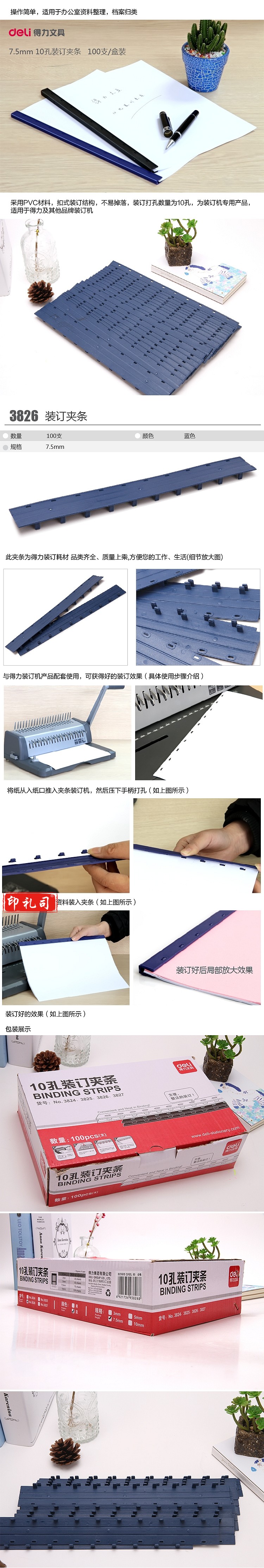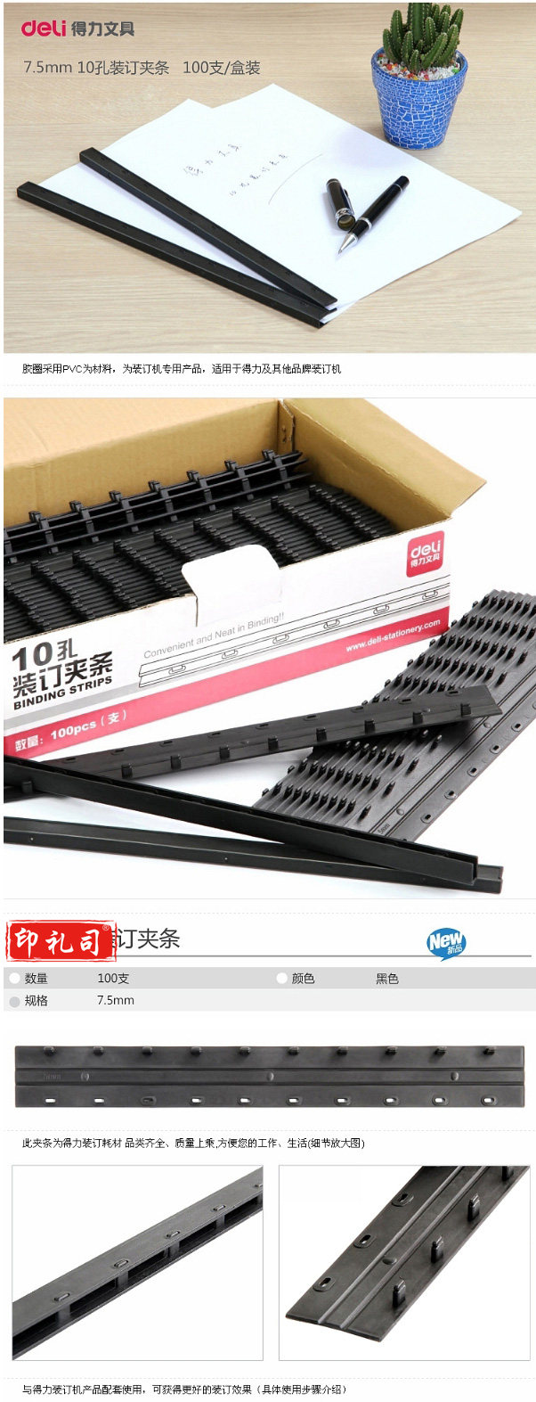 得力 3826 装订夹条 黑色 300*7.5mm 100支/盒(单位 盒)