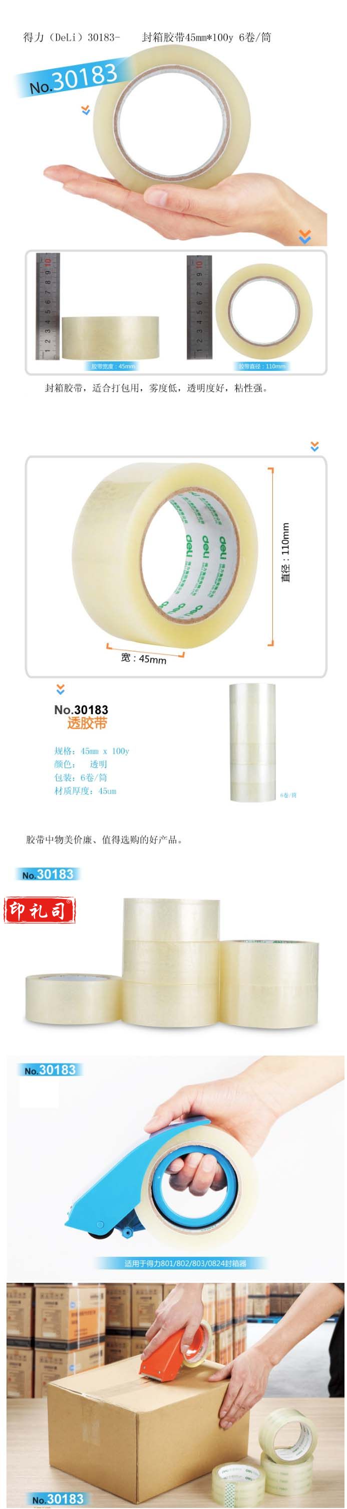 得力 30183 封箱胶带 4.5cm*100y 6卷(单位 卷)