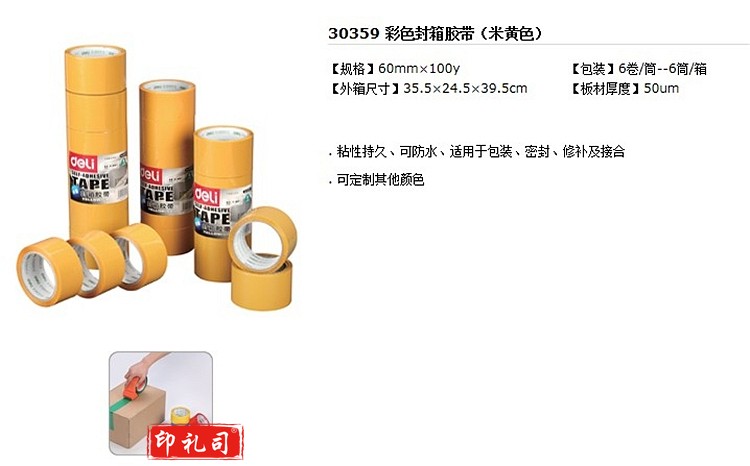 得力 30359 黄色封箱胶带 60mm*100Y(单位 卷)