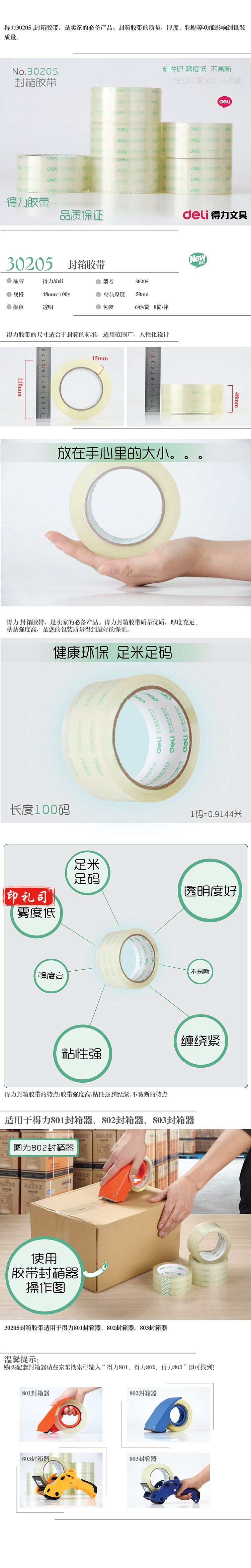 得力 30205 透明封箱宽胶带 48mm*100y 6卷/筒 (单位:卷)(单位 卷)