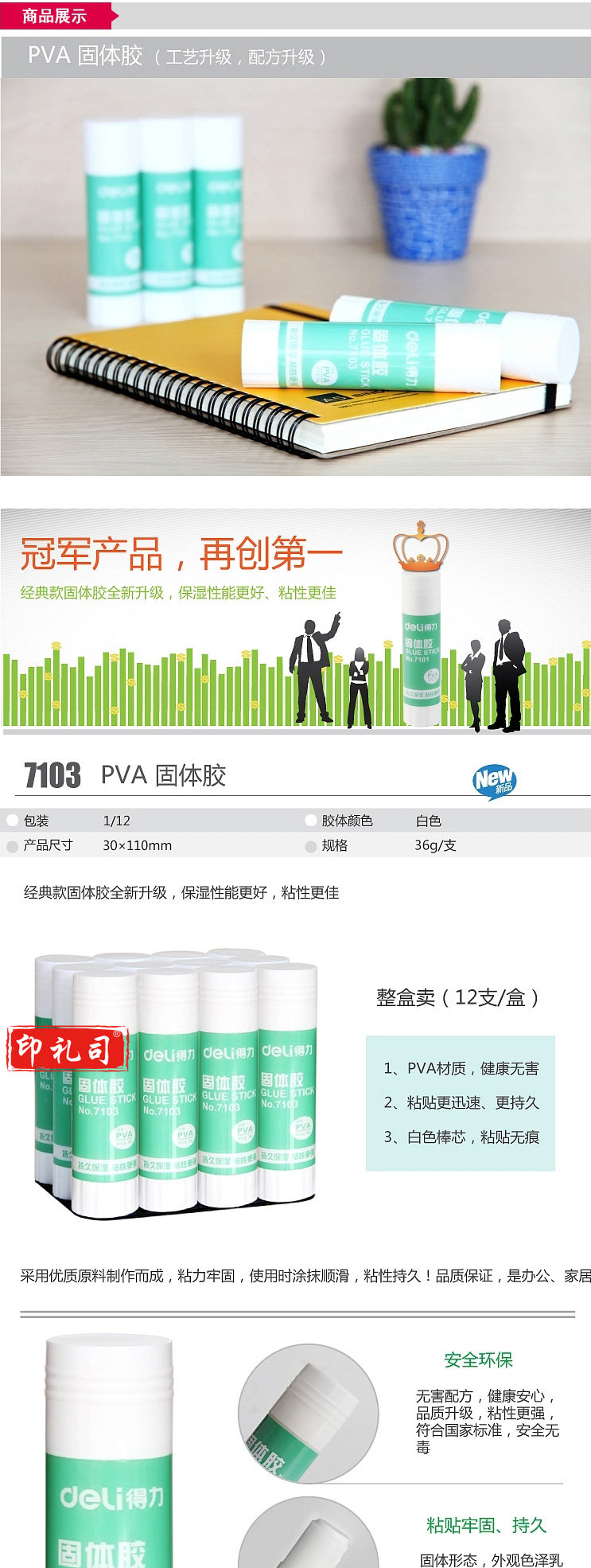 得力 7103 PVA材质 胶棒 36g 12支/盒(单位 支)