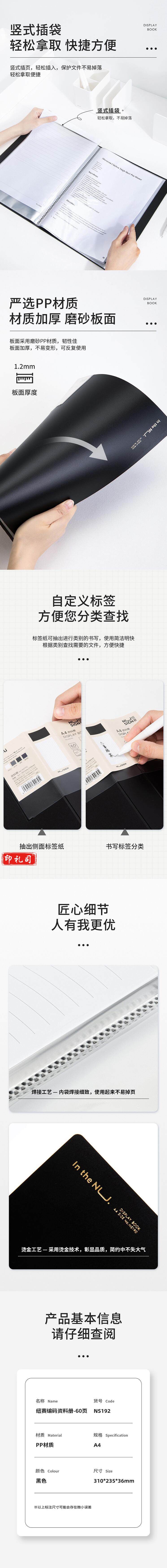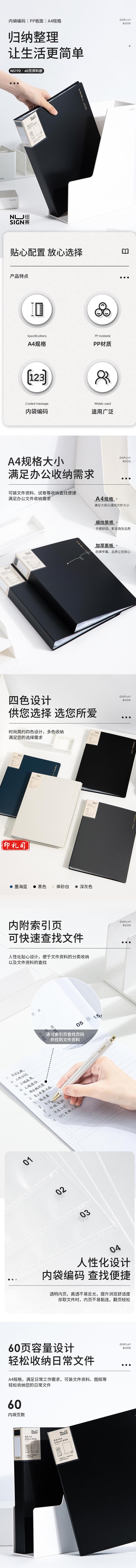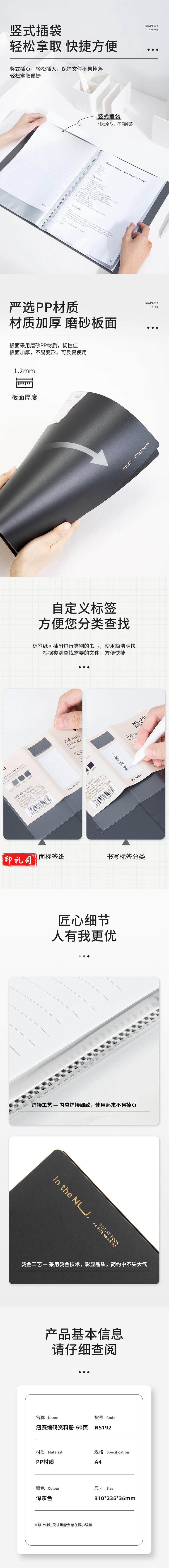 纽赛 NS192 60页 深灰色 带页码活页插袋资料册 (单位 个)