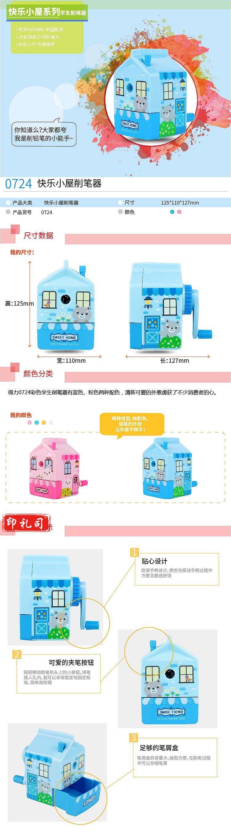 得力 0724 快乐小屋 削笔机 蓝色