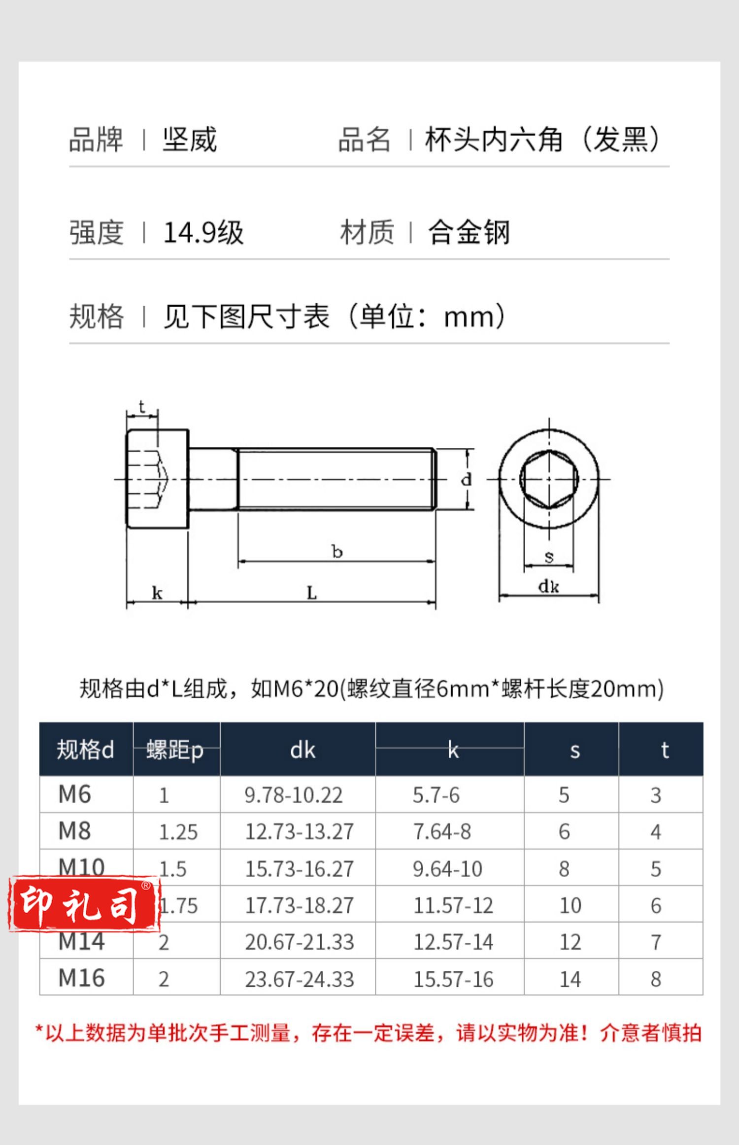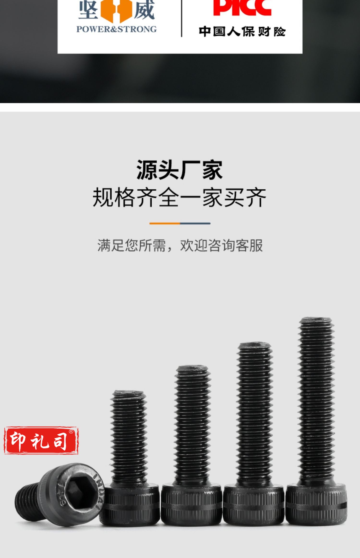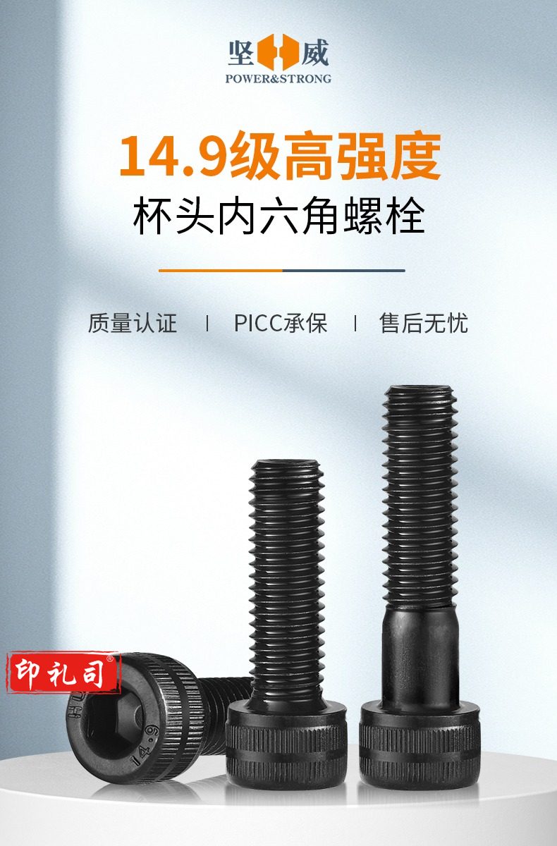 坚威 10*40 14.9级高强度杯头内六角螺丝加长螺栓合金钢黑色螺钉