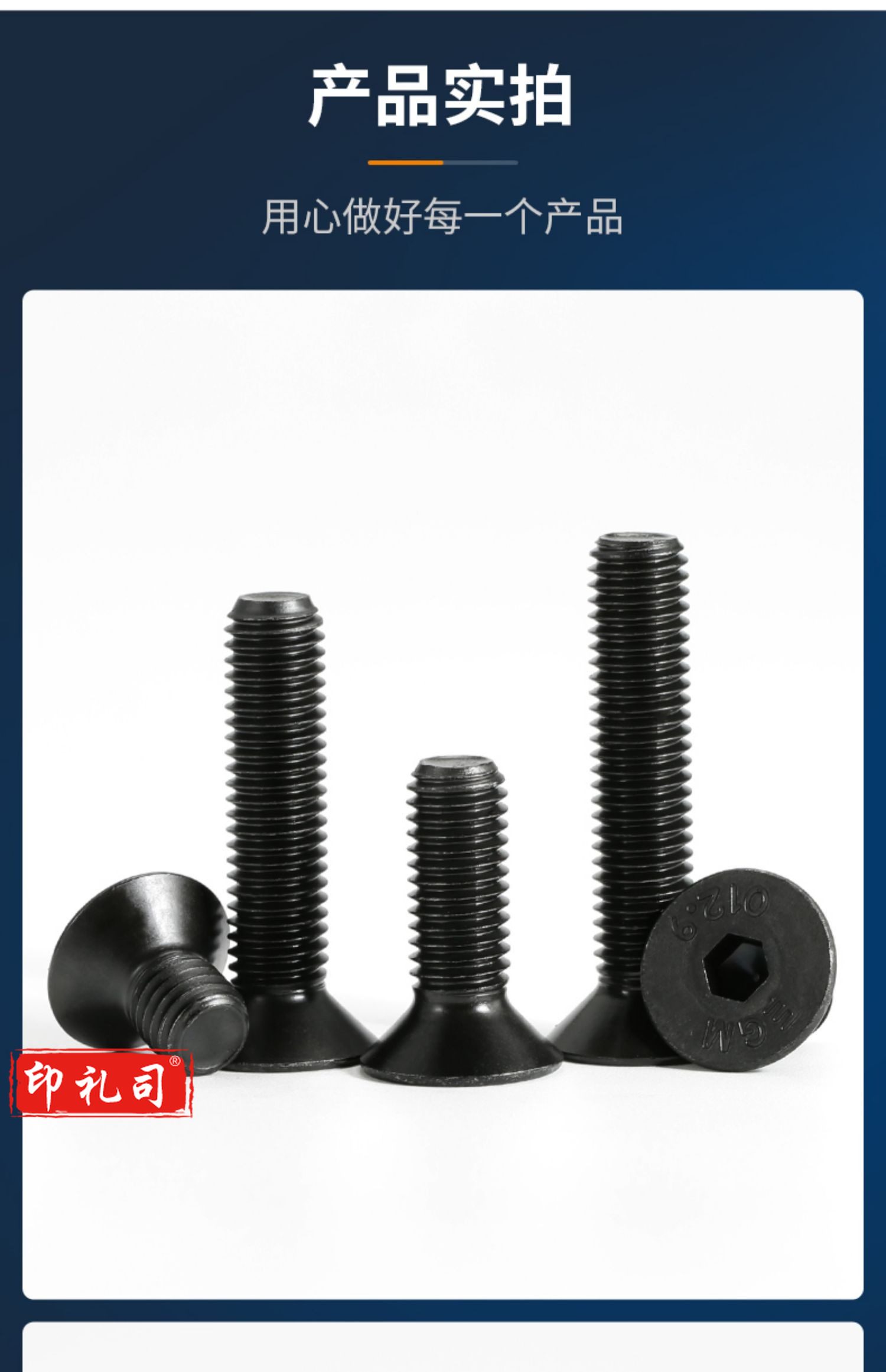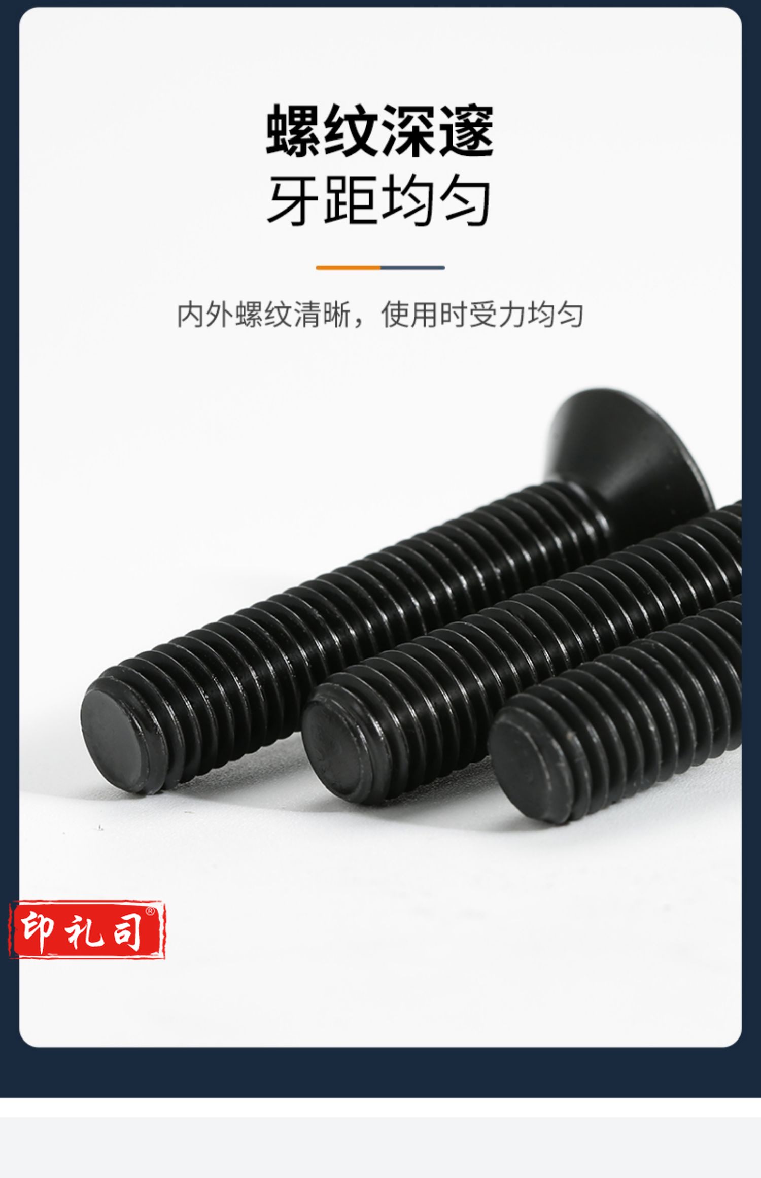 坚威 6*12 12.9级高强度沉头内六角螺丝钉平头六角螺栓螺钉