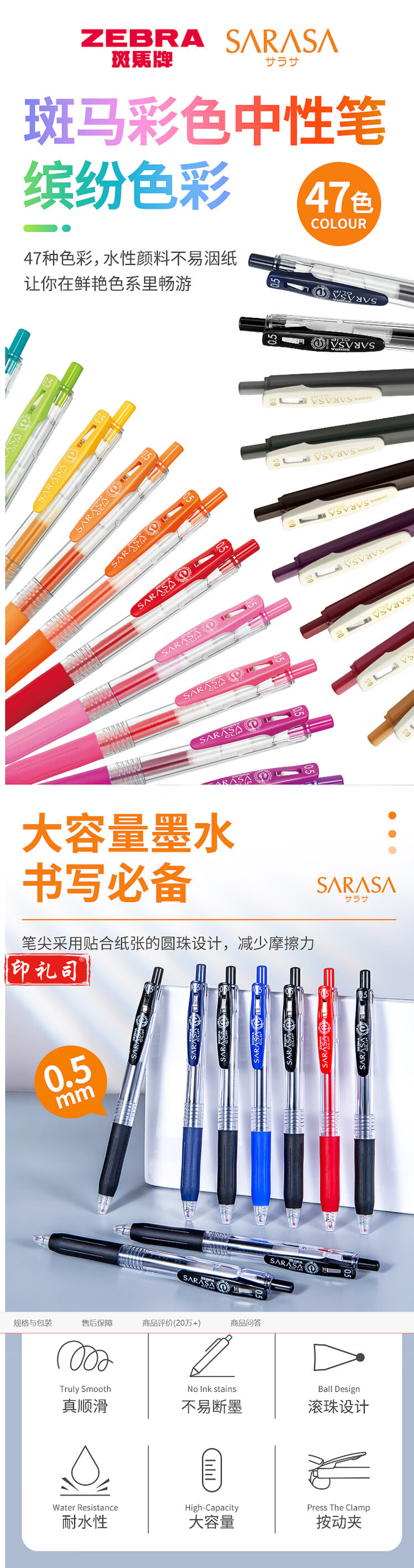 斑马 JJ15-BL按动中性笔 签字笔 0.5mm子弹头啫喱笔水笔