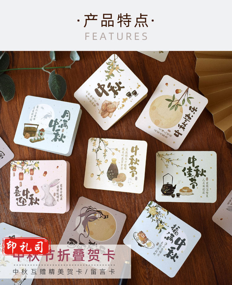 中秋节快乐唯美折叠中国风贺卡高档中式月饼礼盒手写祝福留言卡片纸