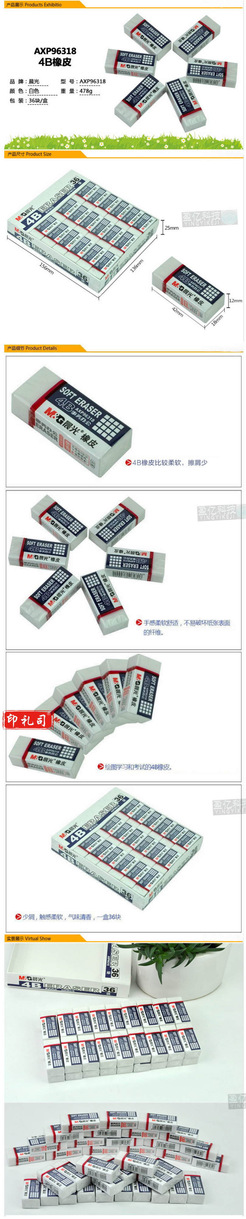 晨光 M&G 4B事务办公橡皮 AXP96318 42*18*12mm (白色) 36块/盒