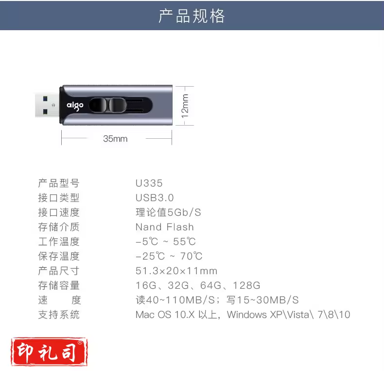 爱国者(aigo) U335优盘U盘 32GB 高速USB3.0 大容量金属迷你U盘 推拉伸缩商务存储优盘闪存盘U盘