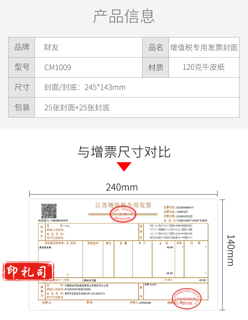 财友25套增值税专用发票抵扣联封面CM1009记账凭证配套用品