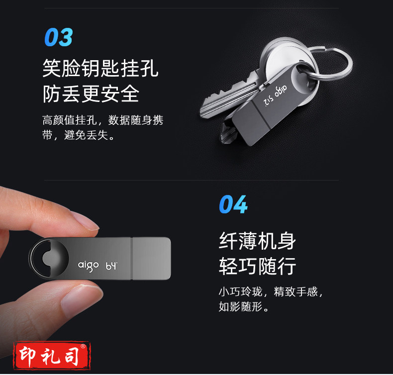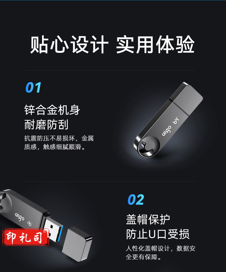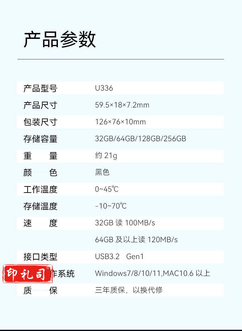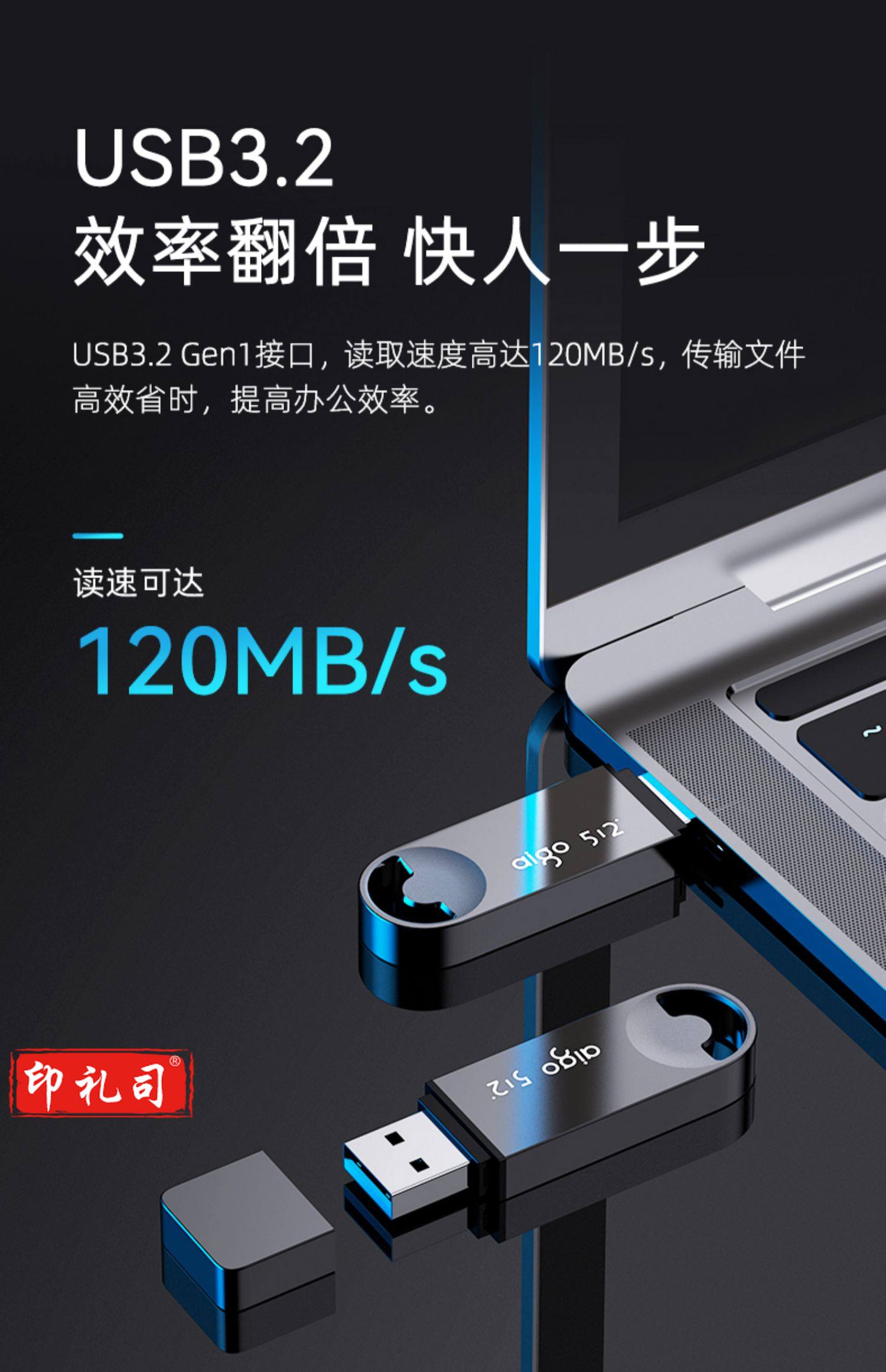 爱国者(aigo)128GB 优盘U盘 USB3.2U盘 U336 金属盖帽 系列效率快传 微笑办公闪存盘U盘