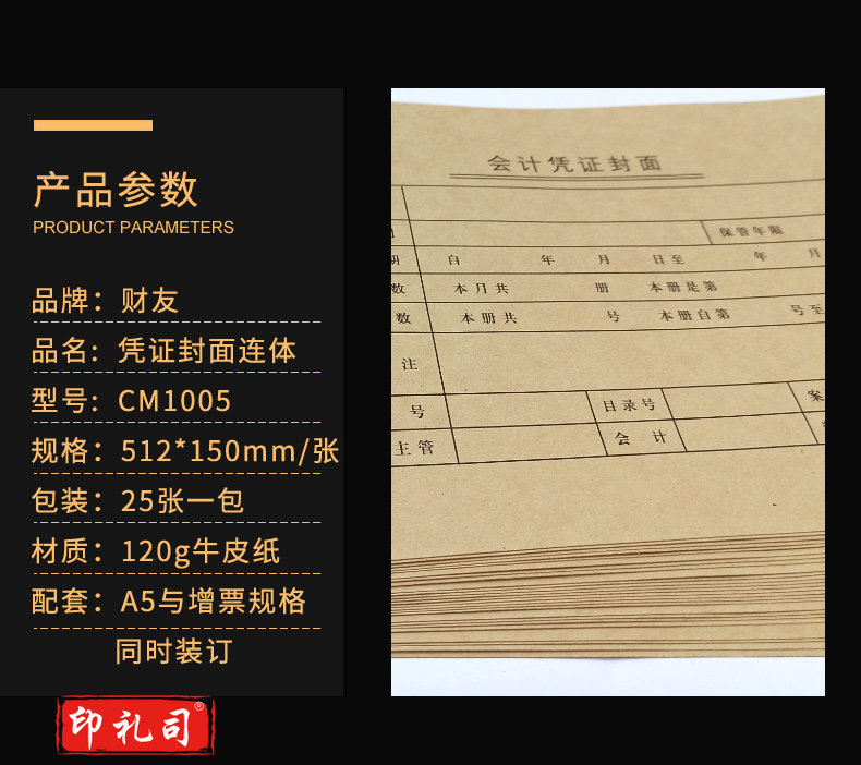 财友 50张A5凭证封面 连体型512*150mm财务会计装订用品