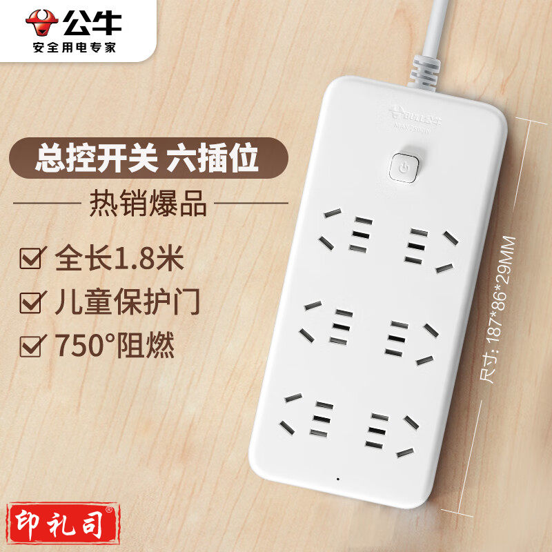 公牛(BULL)新国标插座插排 GN-B2060 6位总控全长1.8米