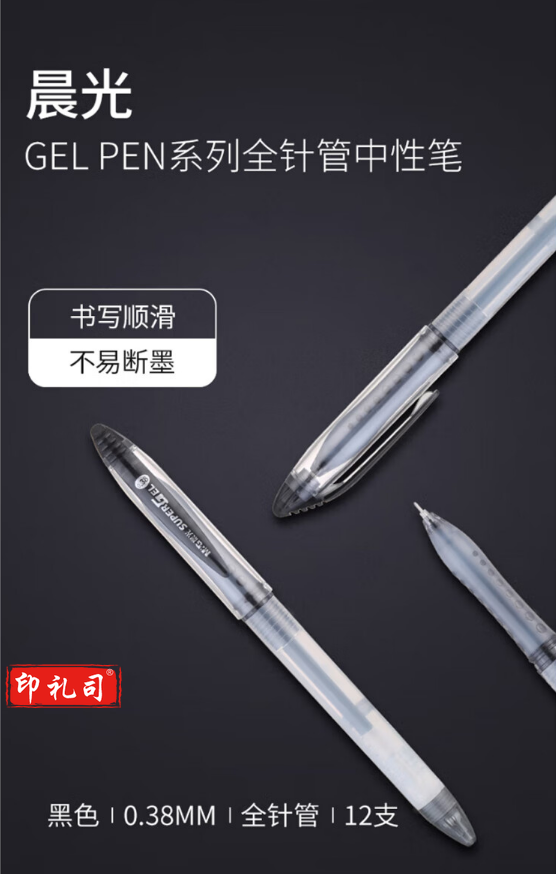 晨光中性笔灵智GP1212黑0.38 12支/盒 3盒/包