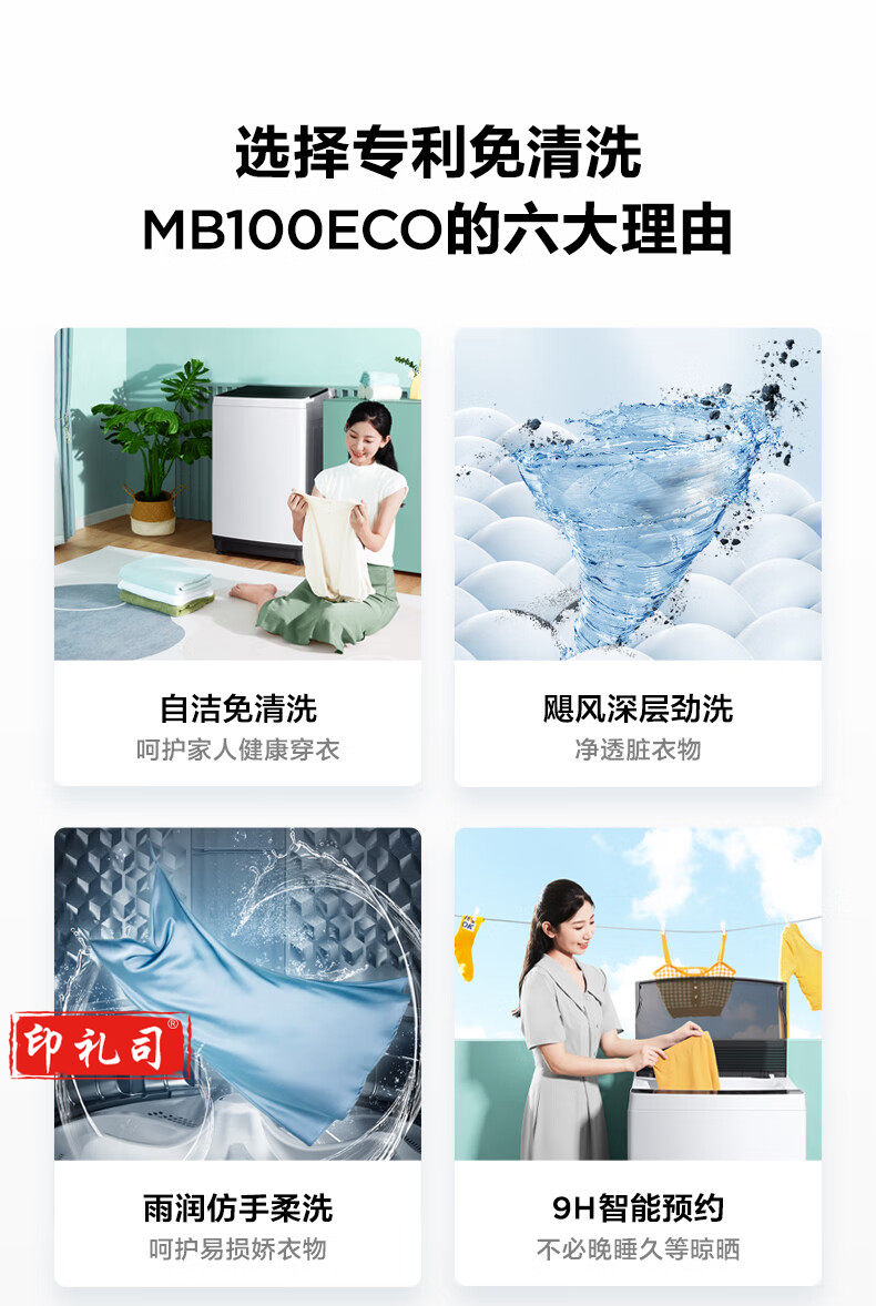 美的 波轮洗衣机全自动 10公斤 立方内桶 水电双宽 MB100ECO