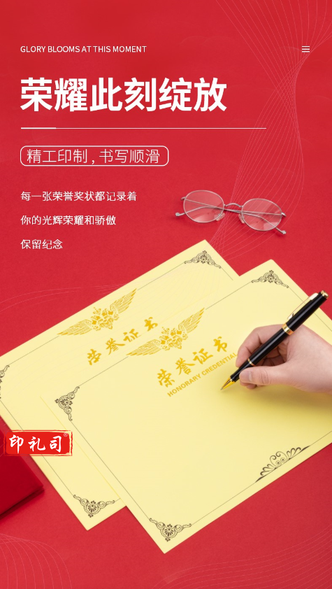 得力3231荣誉证书内芯(黄)-8K(50张/包)