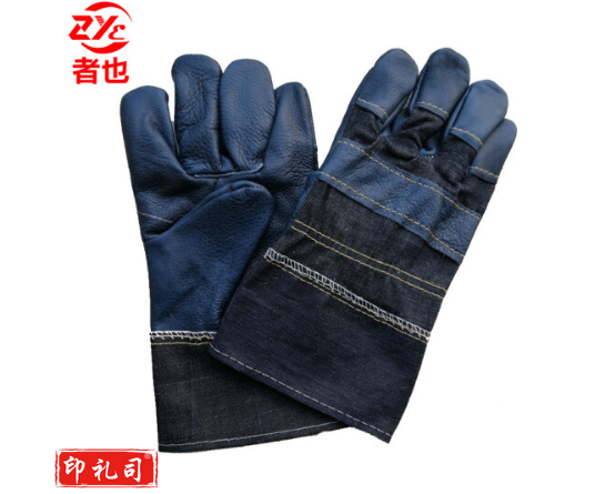 者也 牛皮电焊手套牛仔布短款耐磨焊工手套短皮氩弧焊焊接手套海员手套(颜色随机发) 1双