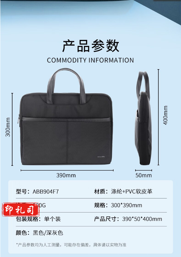 晨光上班族经典商务手提包ABB904F7黑 单个装