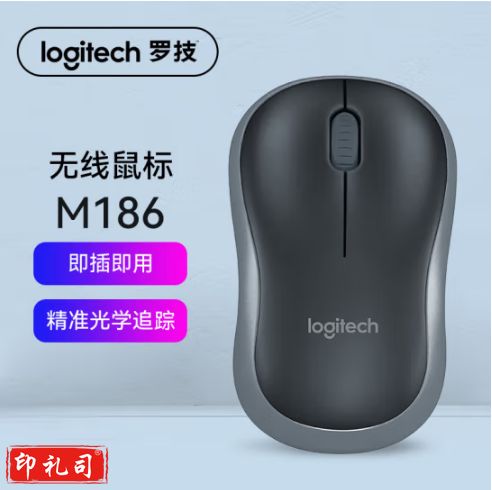 罗技(Logitech)无线鼠标商务办公家用外设小巧便携 M186【灰边】