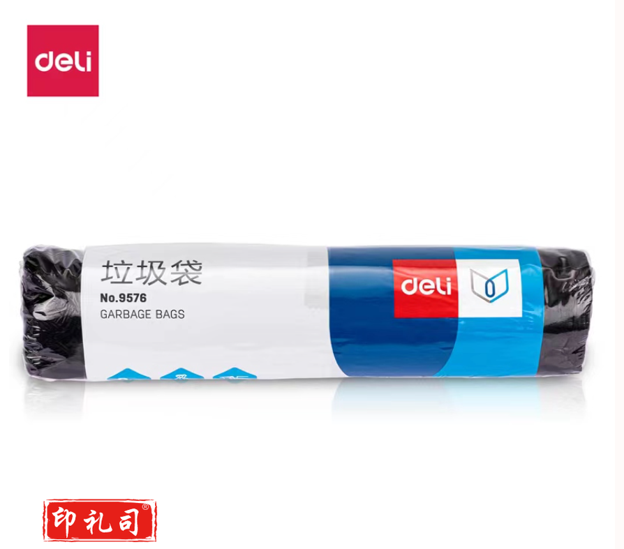得力(deli)加厚垃圾办公塑料袋垃圾袋 八角底 9576 80*100cm (10只/卷,1卷/包)