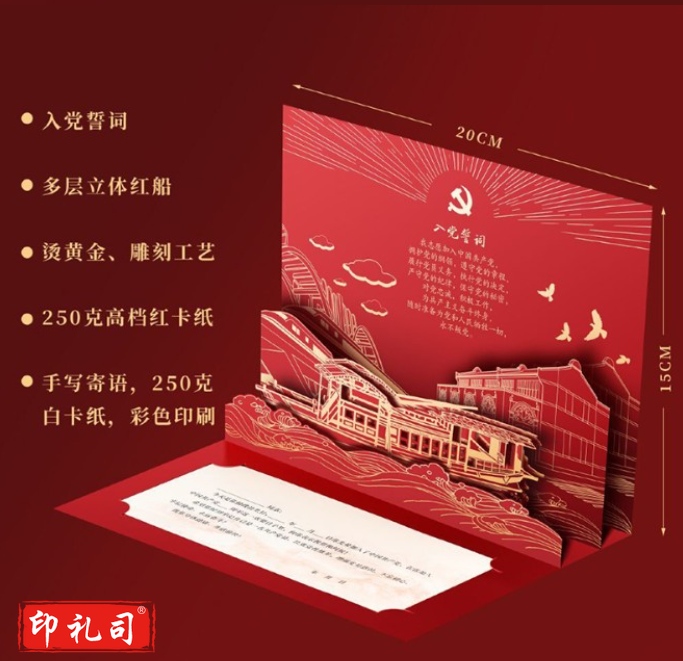 党员政治生日纪念卡红船版纪贺卡横版人民日报出版社特殊生日红色寄语重温入党组织关怀立体卡入党誓词祝福语纪念品