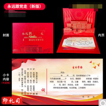 新款党员政治生日贺卡2023支部中国风创意立体红船剪纸祝福卡 2023新版永远跟党走