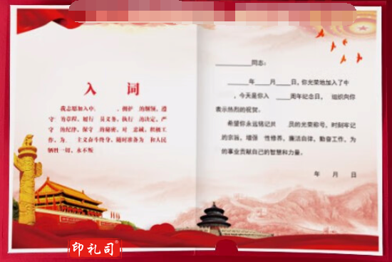 2023新款中国风党员政治生日贺卡定制中国风3D立体入党周年党龄感恩祝福纪念卡片单位企业可定制 平面款式二