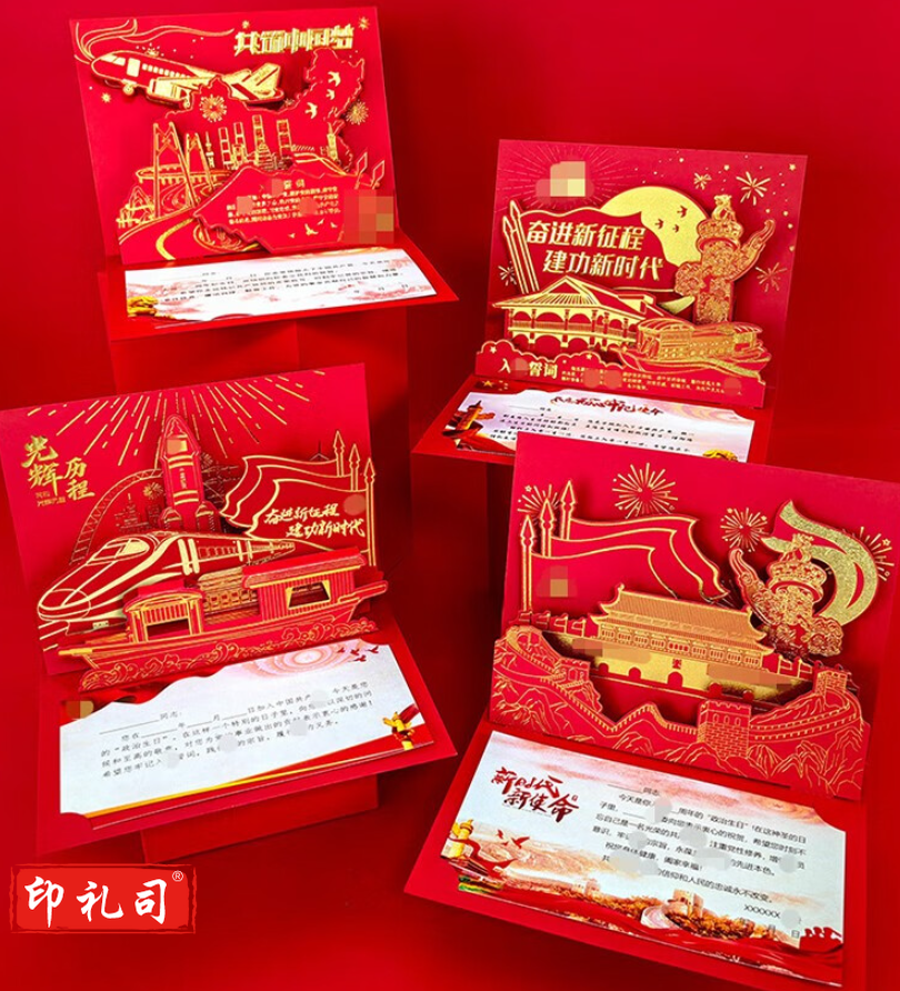 2023新款中国风党员政治生日贺卡定制中国风3D立体入党周年党龄感恩祝福纪念卡片单位企业可定制 竖版大会堂 10个起售