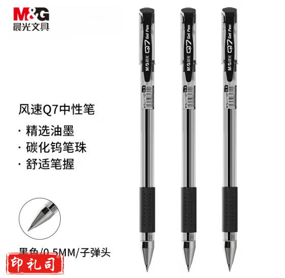 晨光 风速Q7 中性笔子弹头签字笔 办公用笔12支/盒