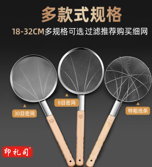 加厚油炸漏勺不锈钢密网过滤网勺油炸小笊篱细网小漏勺直径25cm