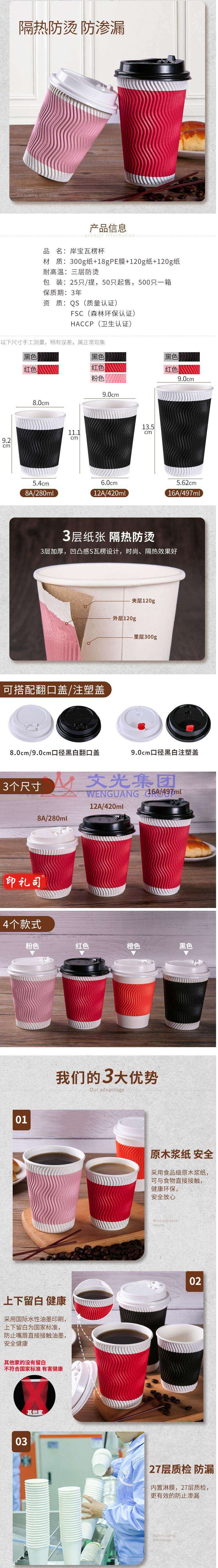 纸杯 一次性杯子 奶茶杯 瓦楞杯 带盖 红色