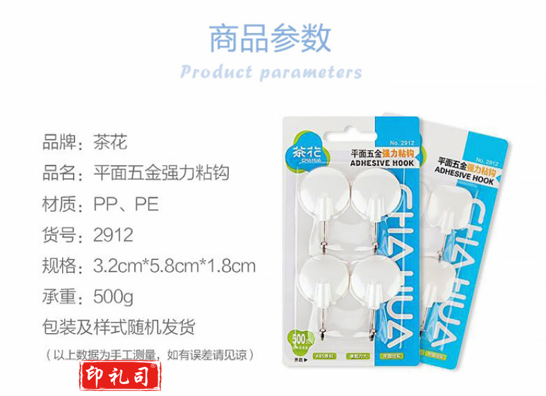 茶花 厨房浴室挂钩贴2912免钉粘钩强力挂钩 4支装