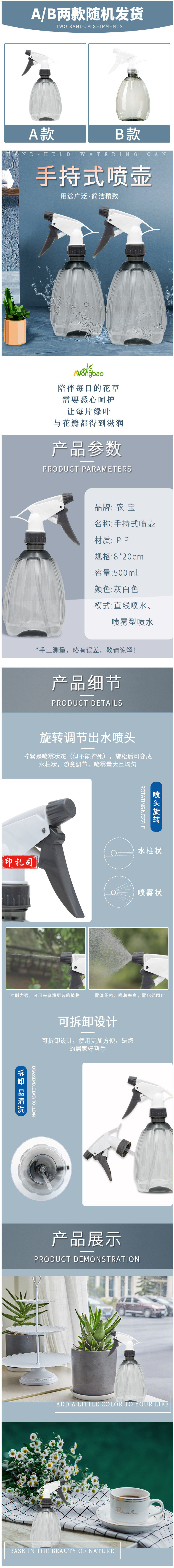 农宝 喷壶 手持式壶 喷水壶 气压式消毒喷壶 酒精小喷壶 500ml